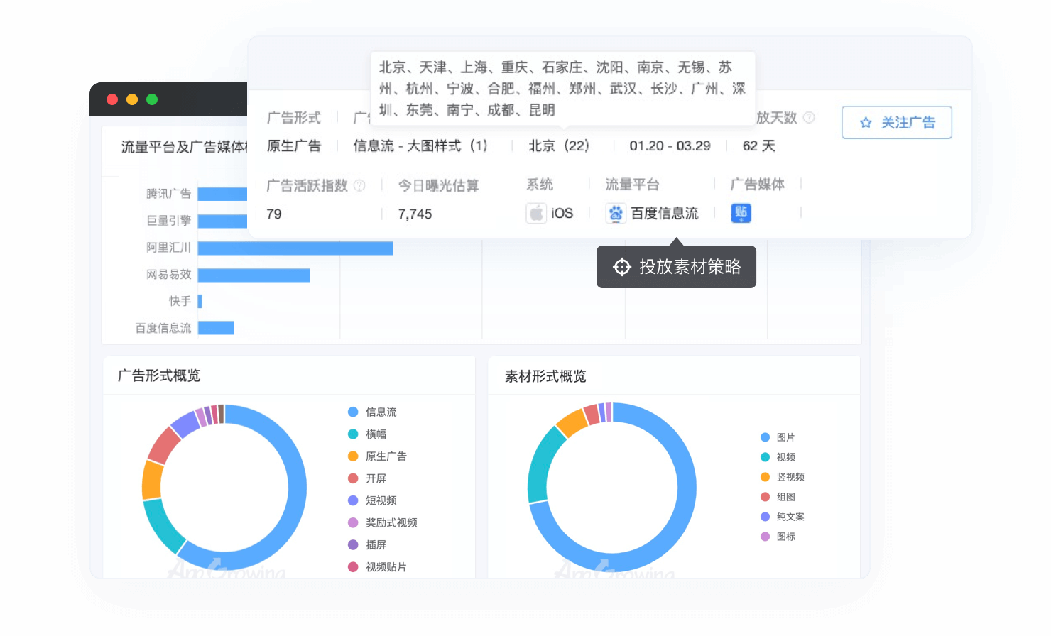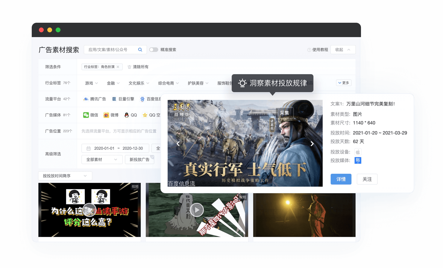 市场推广玩法层出不穷,热点素材难追踪,广告素材方向洞察费精力,难以全方位获取各行业各渠道的广告热点方向